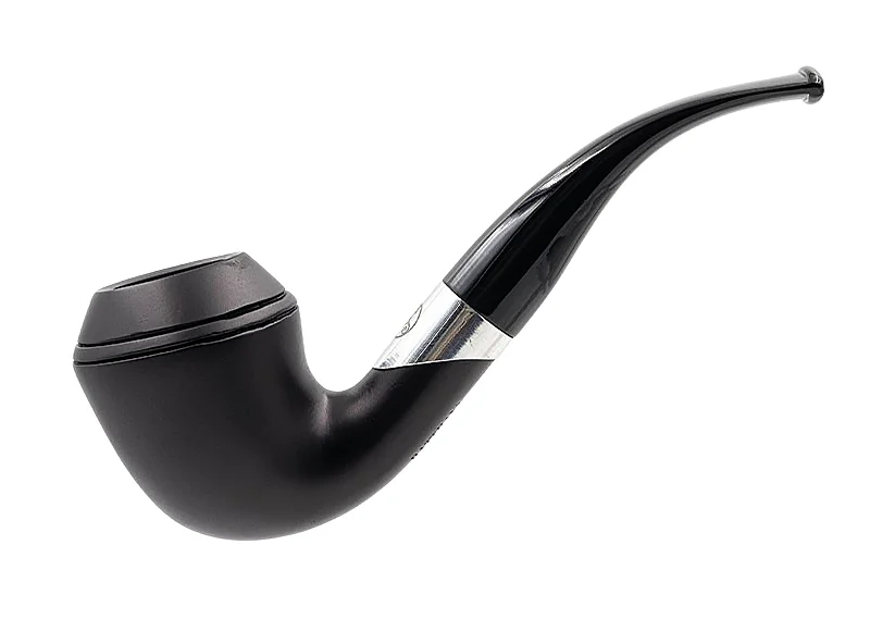 Tato dýmka Rattray’s Emblem č. 155 je zakřivená dýmka typu Rhodesian s matným černým povrchem . Je zdobena elegantním hliníkovým kroužkem s triskelionem, emblémem skotské značky. Je vybavena 9mm filtrem a černou akrylovou trubicí .